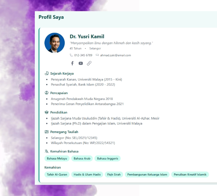 Sebagai pendakwah bebas, jadual saya sentiasa padat dan masa untuk membuat persiapan kadang-kadang sangat terhad. Sejak menggunakan AsatizahPro, urusan saya jadi jauh lebih mudah. Fungsi Penjana Rangka Ceramah tu memang satu 'game-changer'. Saya cuma beri tajuk, dan dalam seminit, saya dapat draf lengkap dengan dalil Al-Quran dan hadis