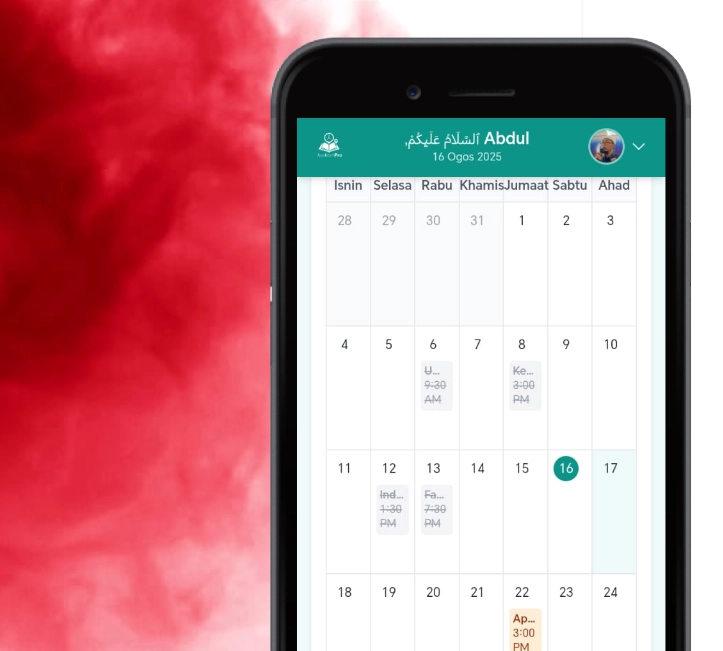 Saya menguruskan jadual untuk dua orang ustazah yang sangat aktif. Sebelum ini, saya terpaksa guna kalendar, WhatsApp, dan spreadsheet secara berasingan—memang kelam-kabut!